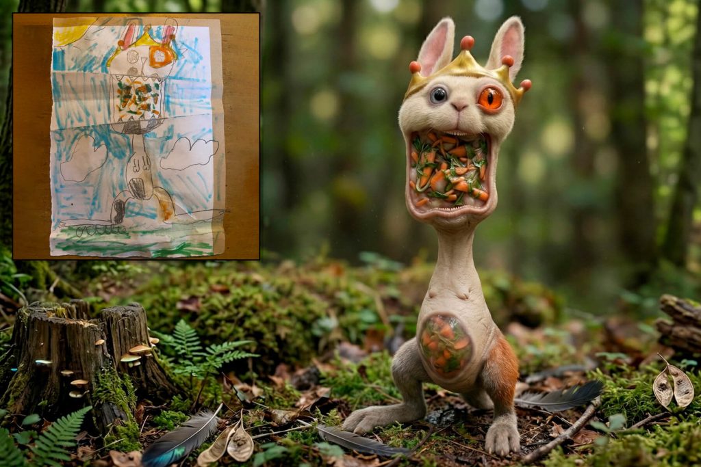 Engineering advanced prompts to transform children’s sketches into high-fidelity realistic creatures as part of a series exploring the intersection of AI and traditional design.