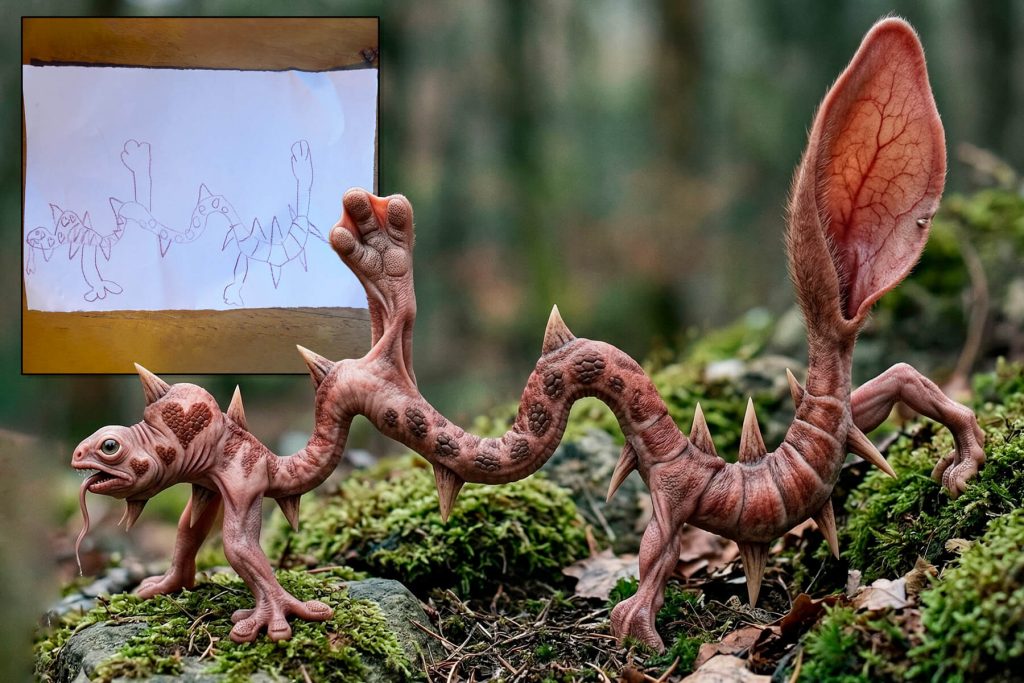 For this initial challenge, I collaborated with my six-year-old daughter, Ottilie, to see if I could develop a sophisticated prompt capable of bridging the gap between a child’s imagination and professional-grade realism. The goal was to take her “wonky scribbles” and, rather than just cleaning them up, transform them into truly fantastical, realistic creatures.
