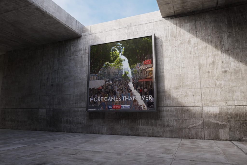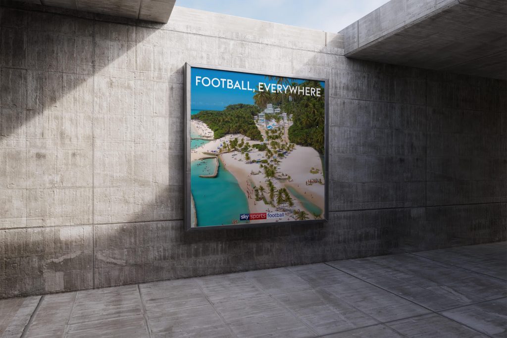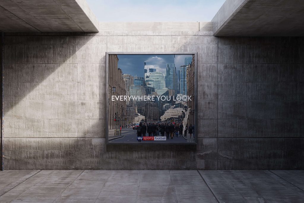 Concept generation and production of innovative, optical-illusion artwork for a Sky Sports pitch, featuring iconic Premier League moments hidden within everyday landscapes.
