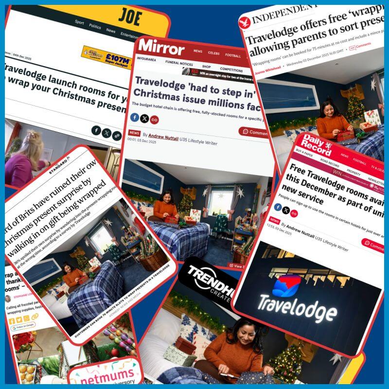 Designing a festive "Wrapping Room" service for Travelodge to provide parents with a private, fully-equipped space to hide and wrap Christmas gifts.